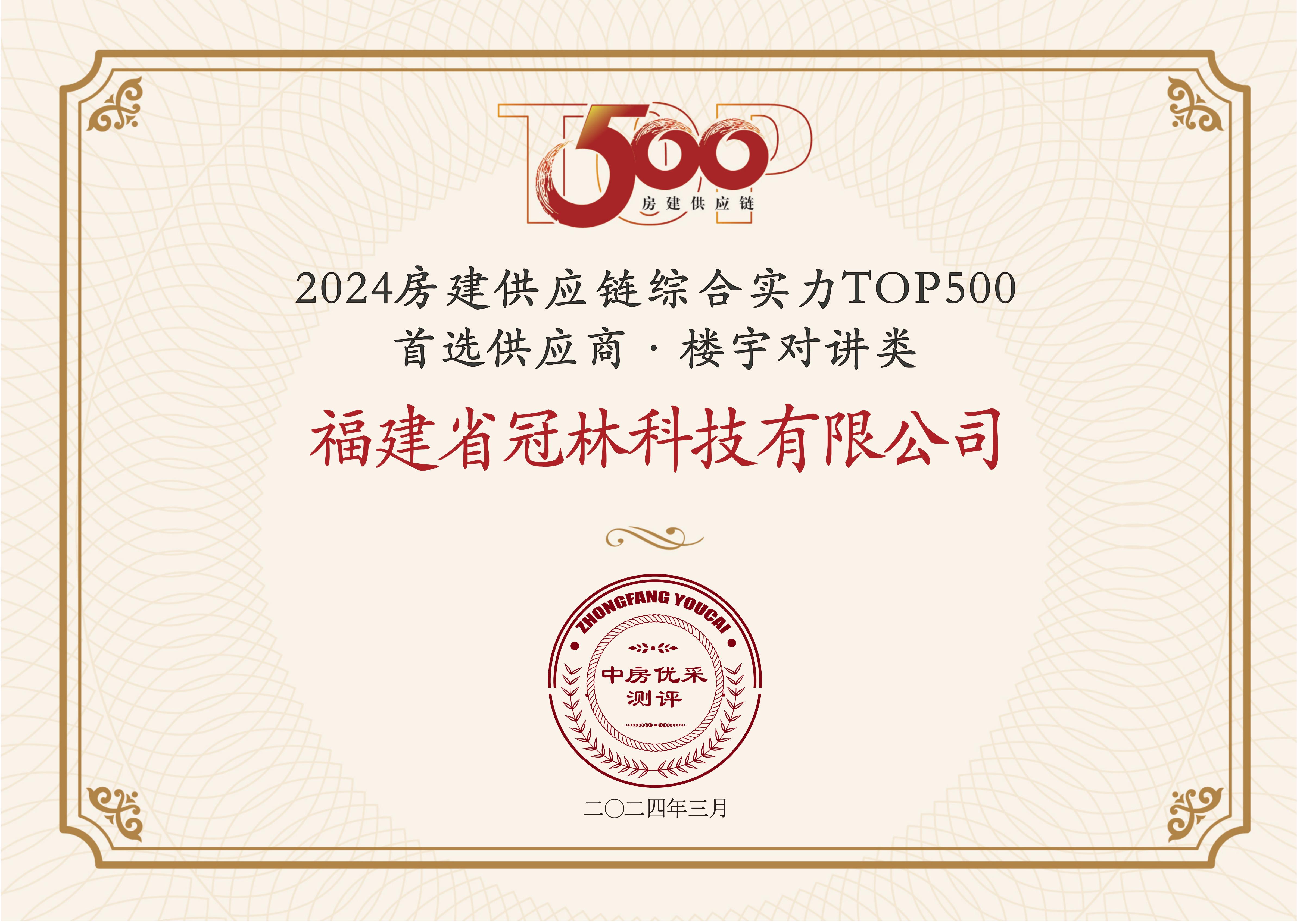 冠林憑借領(lǐng)先的綜合實(shí)力,躋身房建供應(yīng)鏈企業(yè)綜合實(shí)力TOP500樓宇對講類/智慧社區(qū)服務(wù)類/智能家居類首選供應(yīng)商。